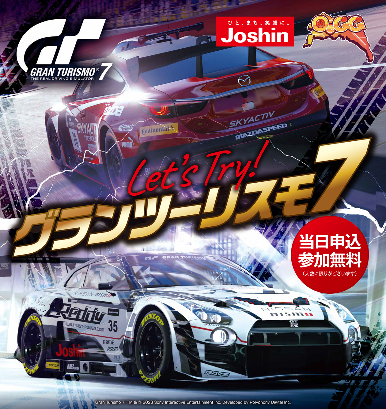 実況、解説付きの本格的なレースが気軽に体験できるほか、Joshin岸和田店で個人戦に加え、その個人戦の決勝者とゲストであるニシケンさんとのエキシビジョンレースの開催が予定されています。
