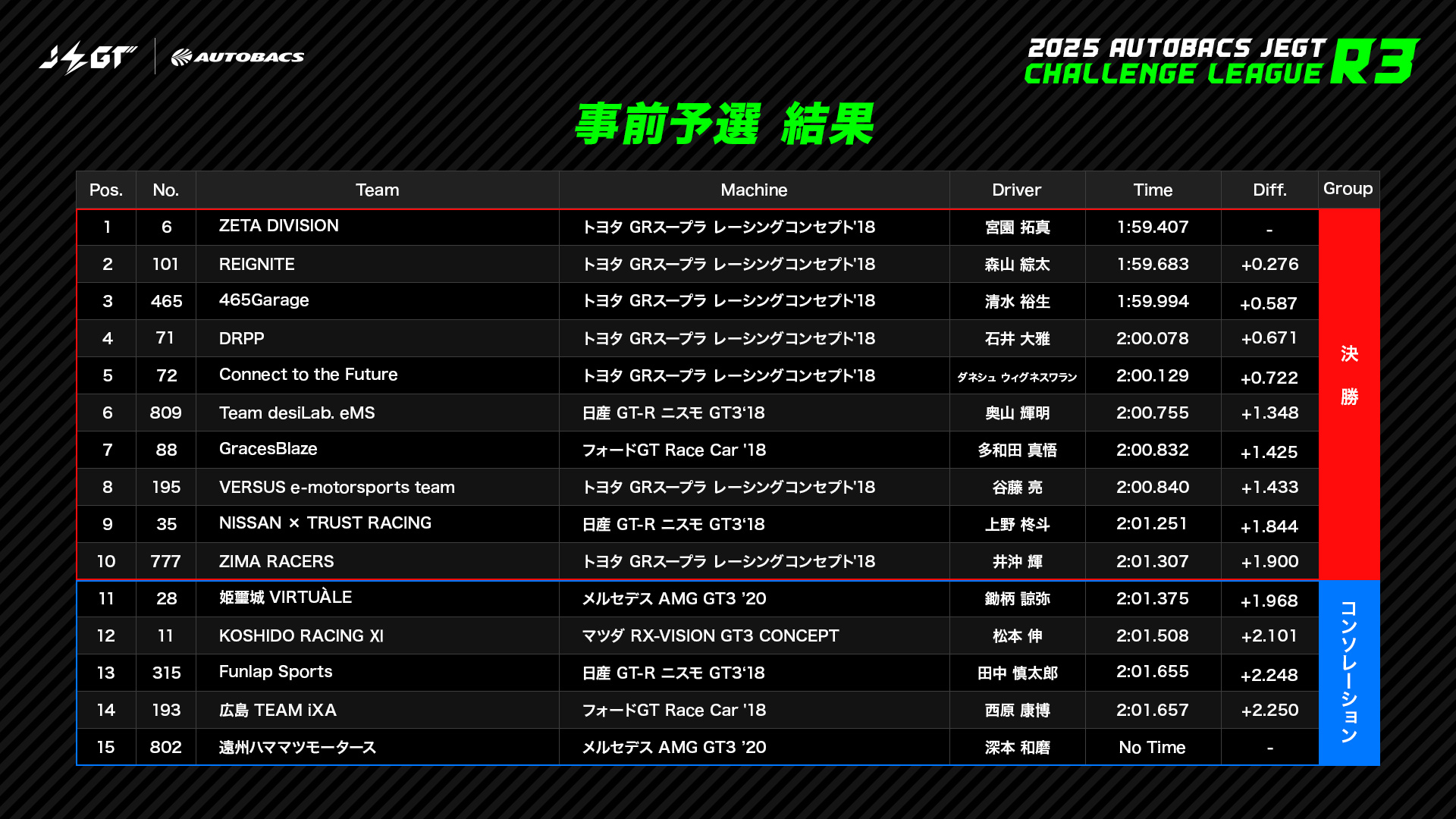 11月29日(土)のチャレンジリーグ最終戦 Rd.3 で、ついに“グランプリシリーズへの挑戦権”を手にする上位3チームが決定します。