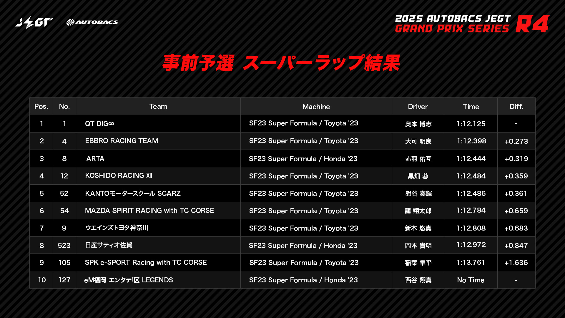 2025年11月22日(土)、レッドブルリンクを使用して実施した「GRAND PRIX Series Rd.4予選スーパーラップ」の結果を公開いたします。