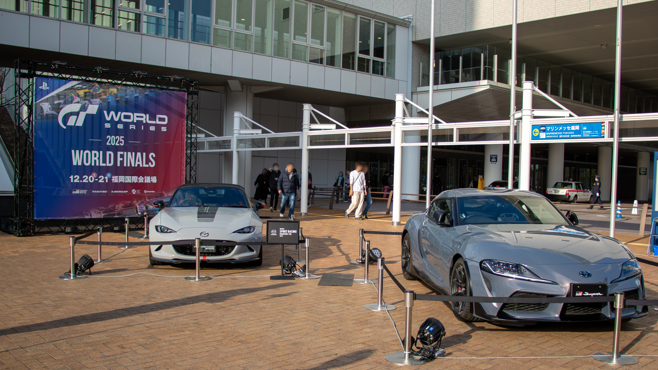 会場となった福岡国際会議場の入口にはマツダ ロードスターとトヨタ スープラが置かれ、外部にも特別なイベントであることをアピール。